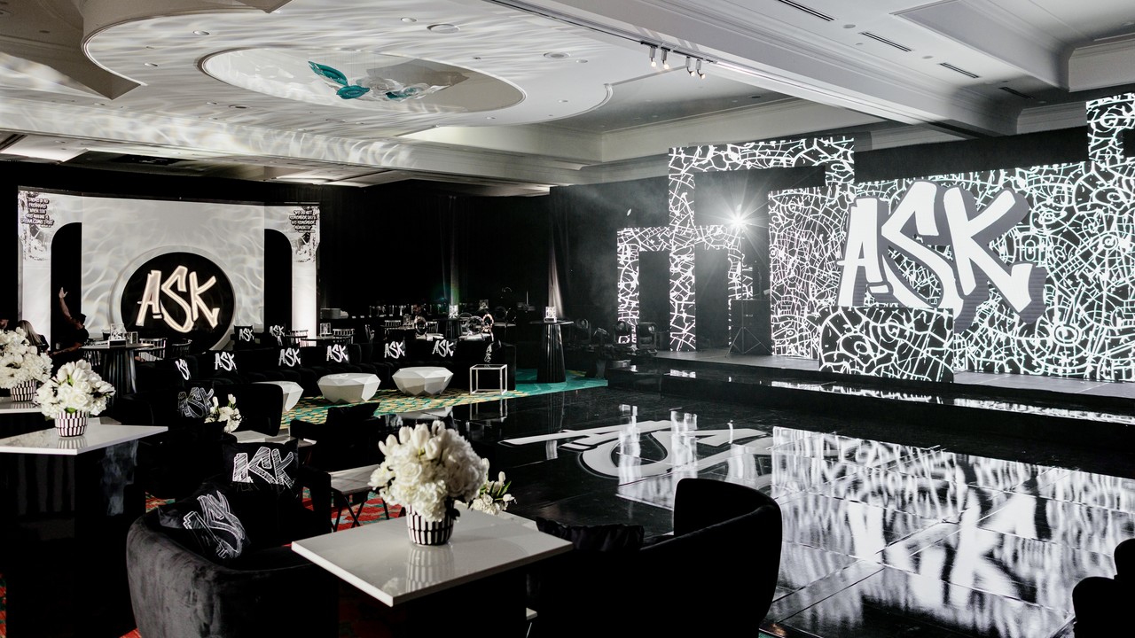 Just ASK us about Adam’s Bar Mitzvah at Opal Grand Resort in Delray Beach, Florida. We’ll be the first to say how fantastic a graffiti aesthetic works for a soccer fan! Black and white high contrast, airbrushed styled logo and event design made for an iconic look. We can’t get enough!